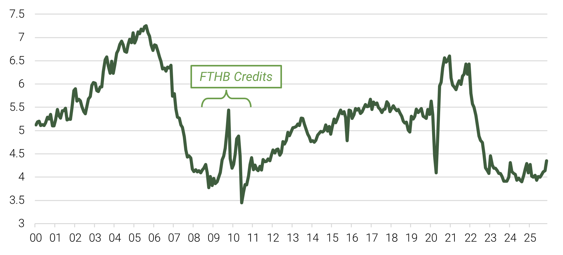While today’s housing market differs meaningfully from the post-GFC environment—particularly with respect to credit availability and household balance sheet health—the historical pattern underscores a key macro consideration: housing incentives tend to alter timing more than long-run demand fundamentals.